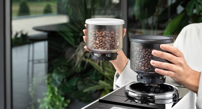 The Bean Switch system lets you explore new bean varieties. The package includes two interchangeable 250g bean holders, to enjoy different coffee aromas. First use the Switch mode to empty the grinder of current beans, choosing whether to prepare a coffee or eliminate them.
