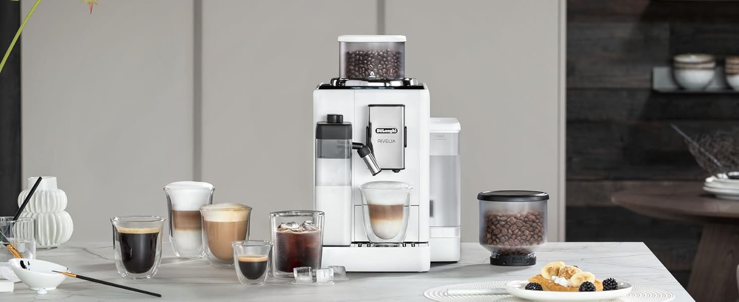 Explore endless bean varieties with Rivelia and its Bean Switch system. Enjoy an immersive experience with a 3.5" full-touch color display with animations and coffee recipes personalized for you. Use LatteCrema Hot to create a rich and creamy foam.