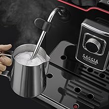 The Gaggia Accademia is equipped with 19 drink options, all easily accessible and customizable via the full color glass touchscreen display. The Accademia allows users to adjust coffee strength, temperature, dose, volume, pre-infusion and flow for the ultimate in-cup results. Equipped with a fully articulated commercial steam wand and auto-frothing carafe the Accademia offers the best of both worlds for crafting barista quality milk specialties.