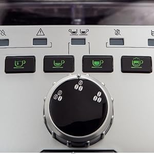 Con i pulsanti puoi erogare e memorizzare la lunghezza del tuo espresso o espresso lungo, erogare acqua calda per tè e tisane, oppure avviare l'emulsione del latte. La manopola centrale ti permette, invece, di regolare l'intensità del tuo caffè su 3 livelli differenti.