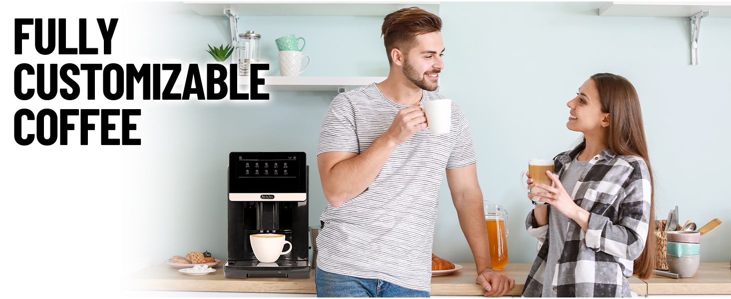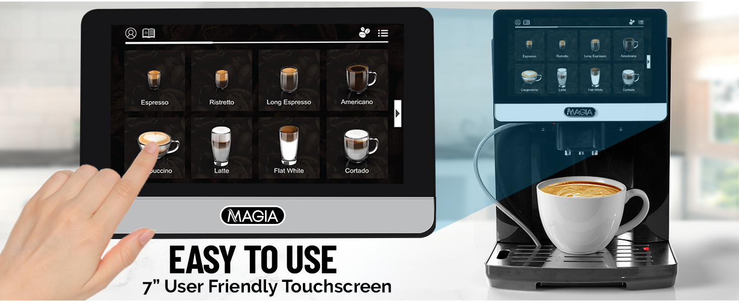 • EASY TO USE: Experience effortless brewing with the intuitive 7-inch touch screen, which makes navigating through options a breeze. The fully automatic coffee machine allows you to prepare your favorite coffee drinks with just a press of a button, and the dual coffee drip feature lets you brew two cups simultaneously for added convenience.