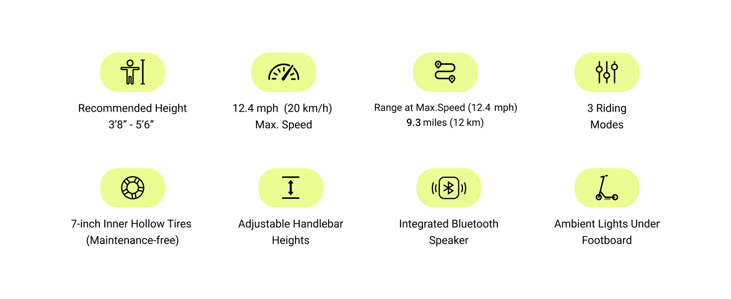• Powerful Performance: Max 12.4 mph, 150W motor, supports up to 132 lbs.