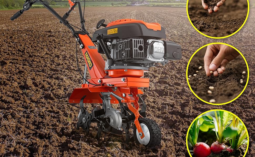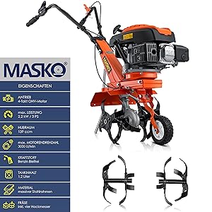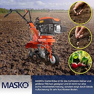 This handy, efficient, safe and powerful tiller from MASKO can be used wherever you want to cultivate areas.