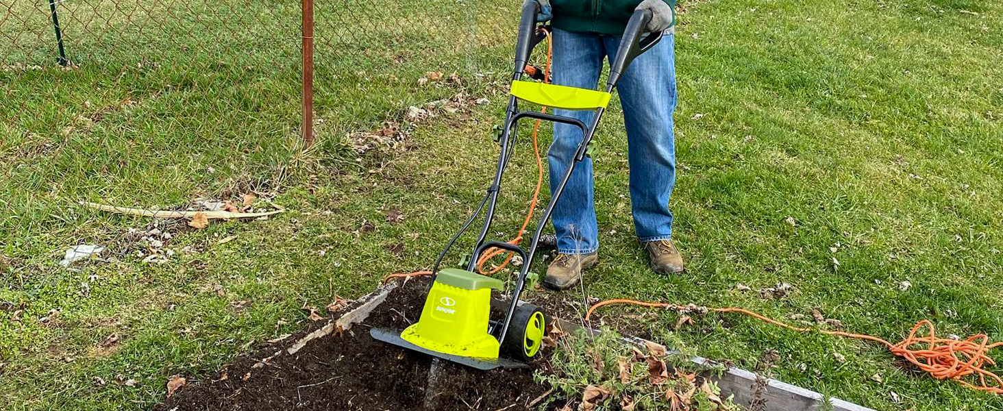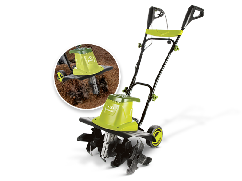 THE DIRTY LITTLE SECRET OF GREAT GARDENS. Experience the one tiller that’s truly up to the task! Introducing a greener, cleaner way to get dirty with the Sun Joe TJ604E Electric Tiller Cultivator. A powerful 13. 5-amp motor quickly pulverizes dirt, effortlessly slicing through the soil at 370 RPM, ensuring maximum aeration and perfectly preparing the seedbed for planting. Cultivate an area 16-inches wide and up to 8-inches deep in seconds. Control weeds where needed - Sun Joe tames the toughest yard and garden tasks with more comfort and less strain. 3-position, height-adjustable rear wheels make it easy to maneuver wherever it’s needed - and its collapsible handle makes it a cinch to store when it’s not.