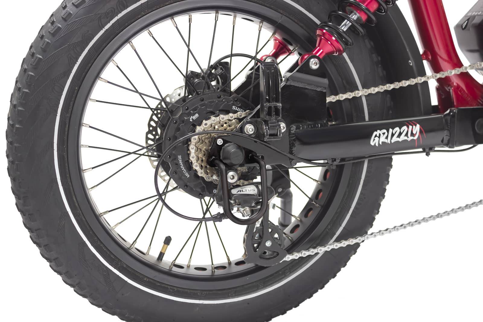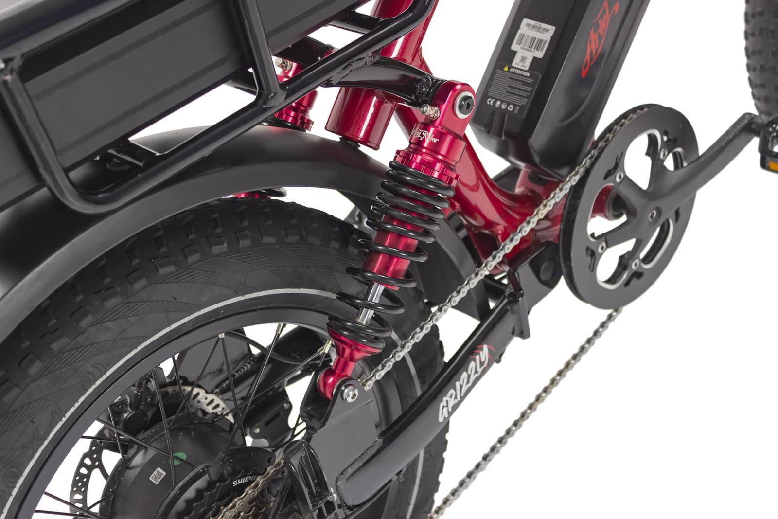 Grizzly boasts one of the best rear suspensions in the market, 100% CNC machined for precision and featuring a rebound adjustment for better handling, support and a lower stance. Whether you're tackling bumps on the road or taking on off-road adventures, Grizzly is designed to keep you comfortable.