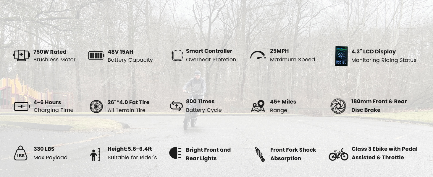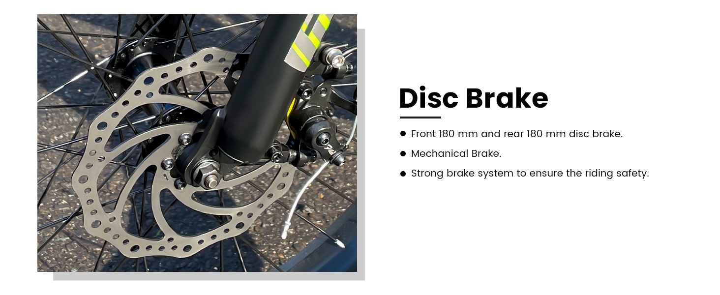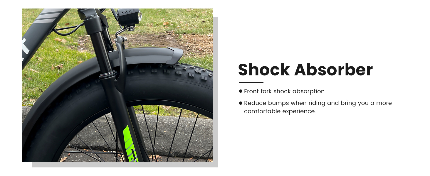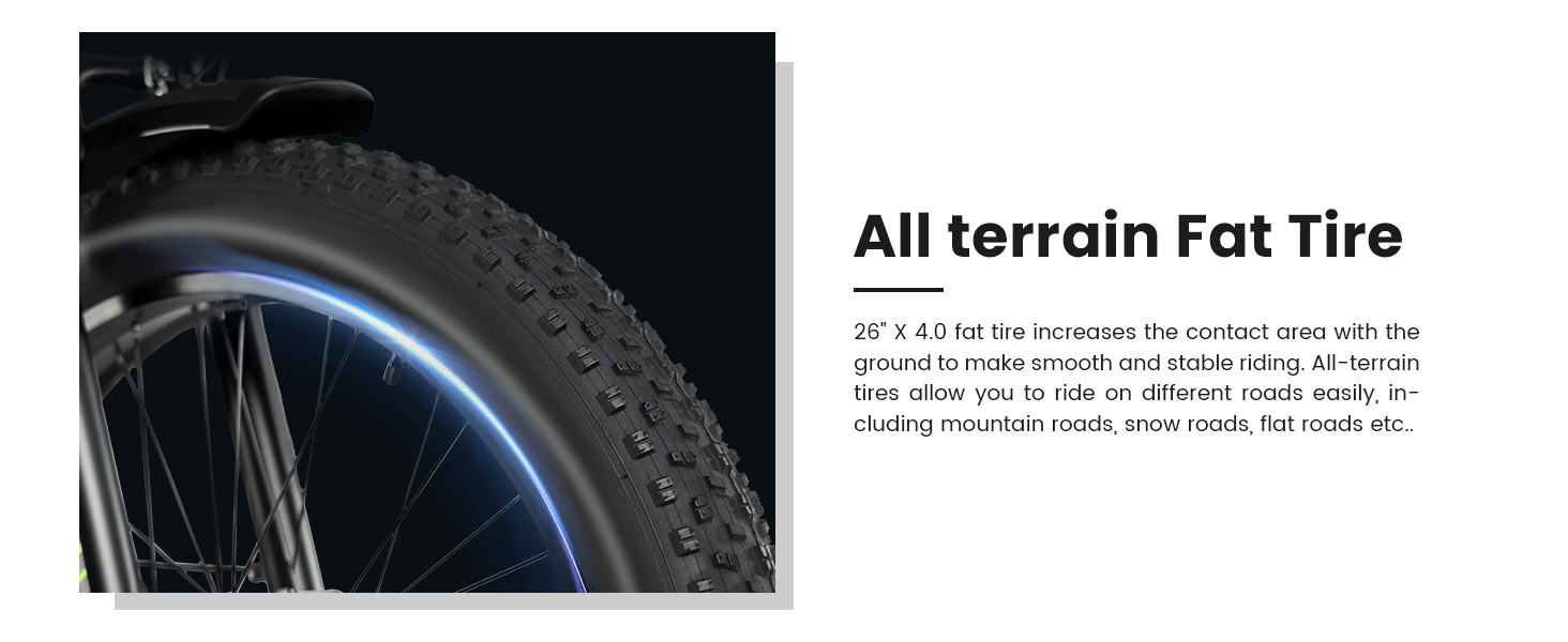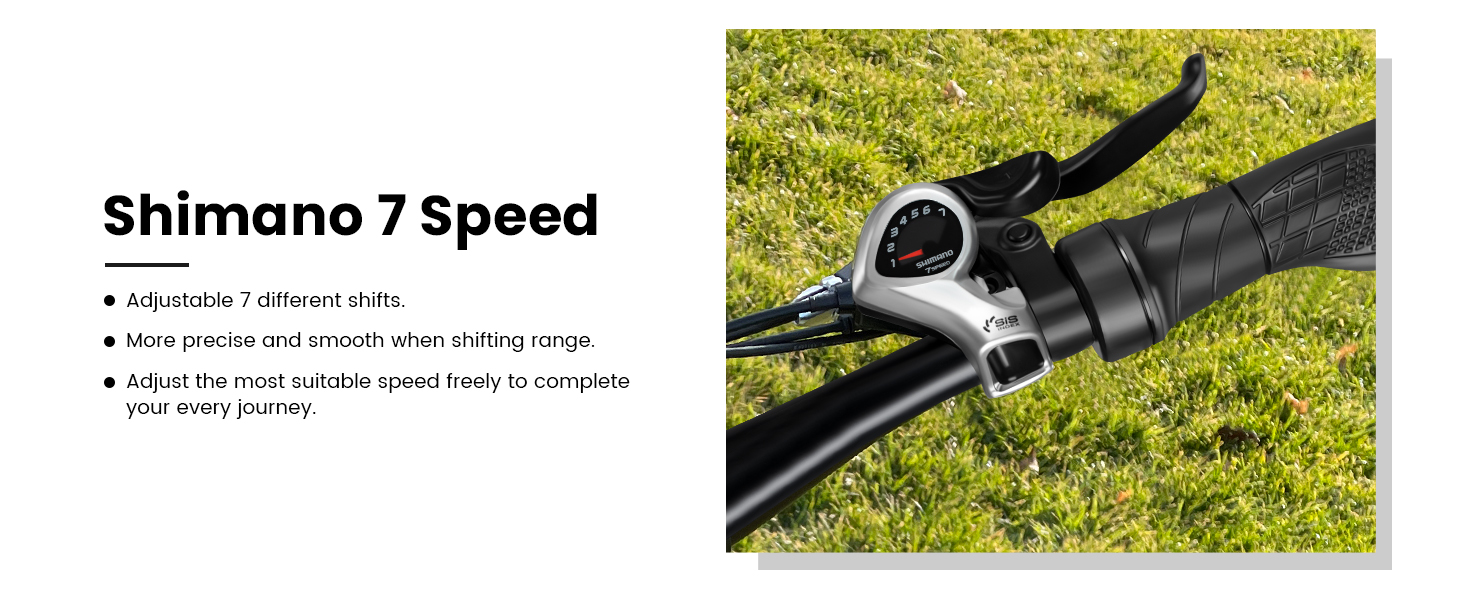 【Large 26’’ Wheel】26” fat tire increase the contact area with the ground to make smooth and stable riding and provide you a better travel experience. At the same time, Suburban 750w electric bike is equipped with a Shimano 7-speed drivetrain, offering more accurate and smooth gear changes. The ability to quickly change gears to suit the rider's riding mode in the face of varying terrain.