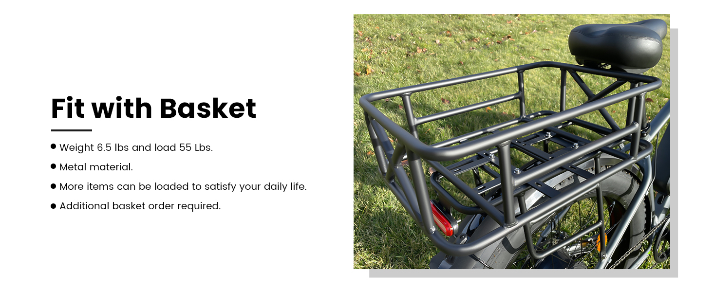 【Upgrade Rear Rack and Light】The rear rack has been upgraded from the original rack of the mountain ebike. The upgraded rack is stronger and more practical. And the rear rack to fit the Mukkpet basket perfectly. This makes it possible to meet a wide range of daily needs, such as delivery, shopping, transport etc.. We have also designed a rear tail light for the ebike. The addition of a rear tail light increases the safety of riding at night.