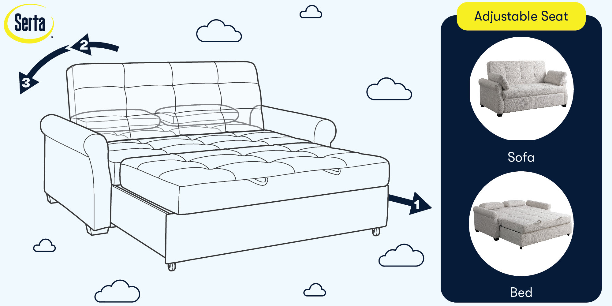 Experience the perfect blend of style, comfort, and functionality with the Serta Queen Size Convertible Sofa. Designed to elevate your living space, this sofa effortlessly transforms from a luxurious seating option to a cozy queen-sized bed, offering you the ultimate convenience. Indulge in unparalleled comfort as you sink into the sofa's deep cushions, fitted with Serta's premium Dream Coil technology. Enjoy the exceptional support and pressure relief that Serta is renowned for, ensuring a restful seating or sleeping experience every time.