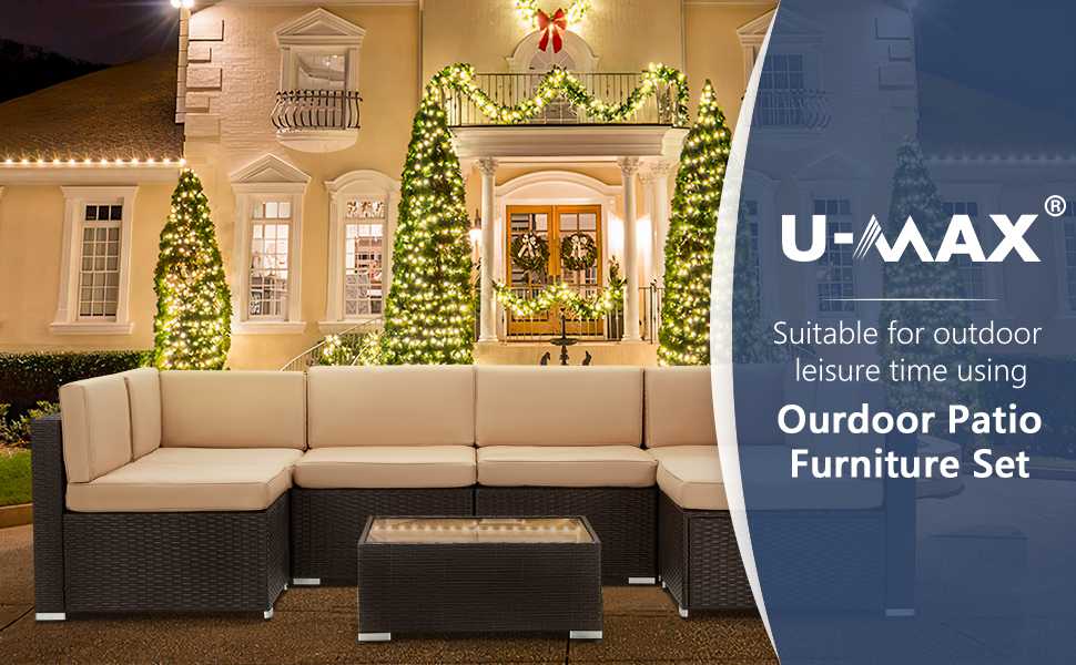 Home / Sofa / U-MAX 7 Piece Outdoor Patio Furniture Set, PE Rattan Wicker Sofa Set, Outdoor Sectional Furniture Chair Set with Khaki Cushions and Tea Table