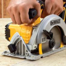 • DCS393 with 6-1/2-inch carbide blade can cut 2x4's at a 45-degree angle in a single pass